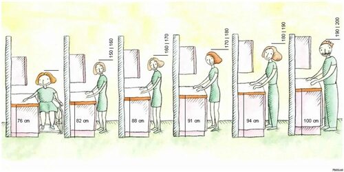 Также важно учитывать высоту пользователей кухни. Если в семье преобладают высокие люди, можно увеличить расстояние между шкафами и столешницей, чтобы обеспечить им более удобное использование кухонного пространства.