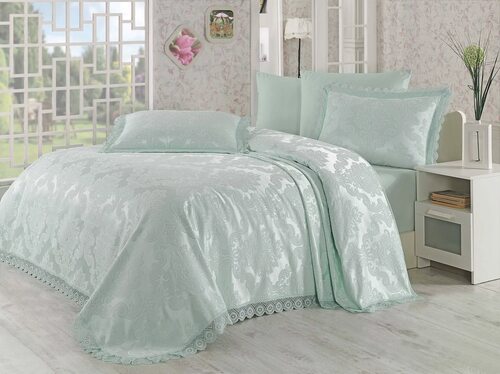 Мятное покрывало на кровать - отличный способ добавить свежести и яркости в спальню. Мятный цвет придаст комнате легкость и уют, а также создаст атмосферу спокойствия и релакса.