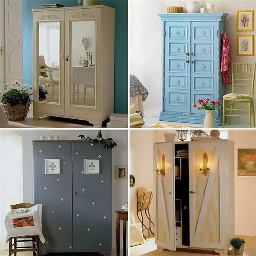 Это лишь несколько идей, и возможностей обновления старого шкафа своими руками множество. Позвольте своей фантазии и творческому вдохновению воплотиться в жизнь! (много фото)