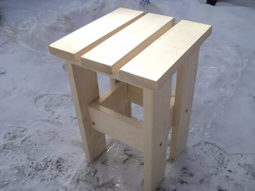 Сначала соберите основу табурета из досок, используя клей и шурупы. Убедитесь, что конструкция прочно держится и не шатается. Этот этап лучше выполнять на ровной поверхности.