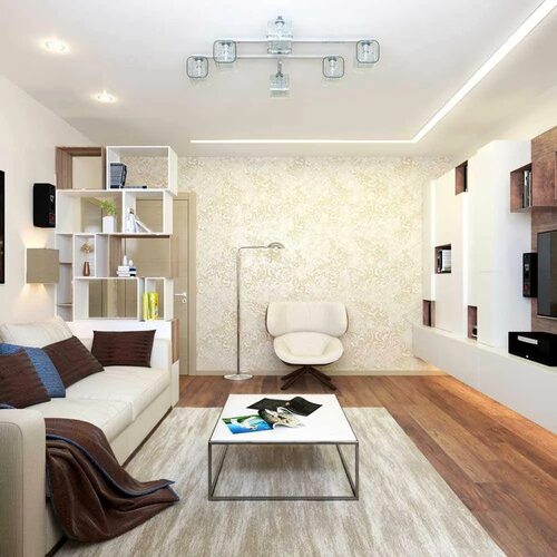 Узкая гостиная в современном стиле