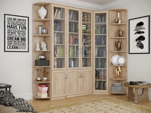 Угловой книжный шкаф для домашней библиотеки