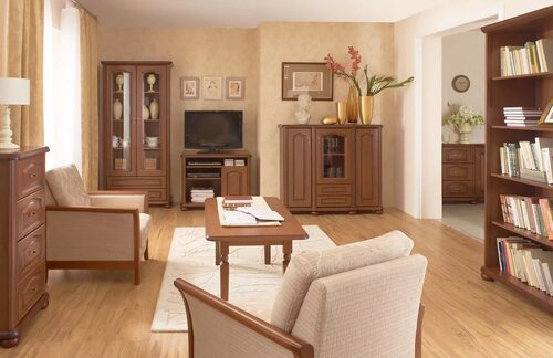 Гостиная с деревянной мебелью