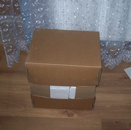 Начните с того, чтобы обтянуть коробку выбранной вами тканью. Затем изготовьте подушку из наполнителя, которую поместите внутрь коробки. Убедитесь, что подушка плотно и равномерно заполняет коробку.