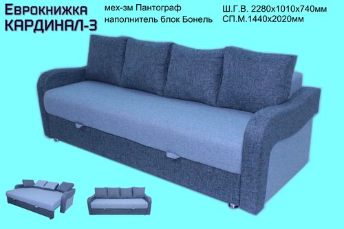 Кардинал 3 диван еврокнижка – это удобная и практичная мебель для вашего дома. Этот диван отличается не только стильным дизайном, но и функциональностью. Его особенностью является возможность трансформации в удобную кровать, что делает его идеальным выбором для гостиной или спальни.