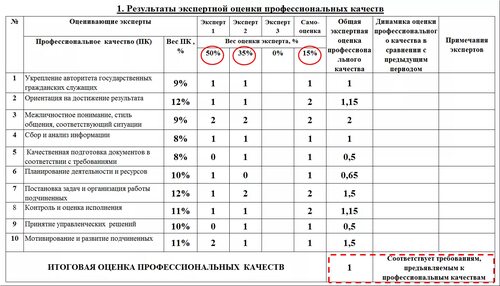 Критерии шкалы экспертных оценок