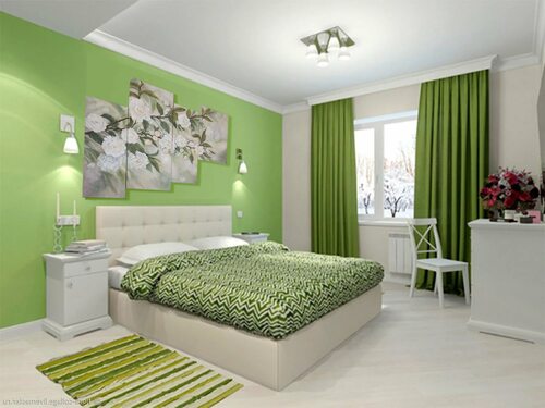 Фотографии интерьеров спален с зелеными обоями