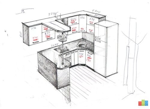 Оптимальные размеры п образной кухни с барной стойкой