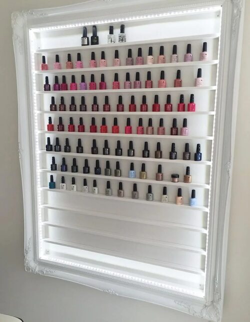 Стеллаж для лаков для ногтей обеспечивает удобный доступ к каждому оттенку. Вы сможете легко найти нужный лак и не потратите время на поиск среди разбросанных бутылочек. Кроме того, стеллаж поможет вам организовать коллекцию таким образом, чтобы каждый лак был на своем месте, что упростит процесс работы и сделает его более продуктивным.