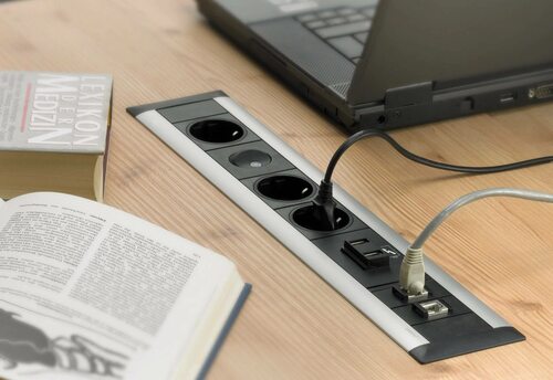 Офисные розетки на стол обеспечивают удобство подключения различной электронной техники, такой как ноутбуки, зарядные устройства, настольные лампы и другие устройства. Они также способствуют поддержанию порядка на рабочем месте, позволяя удобно располагать кабели и избегать их запутывания.