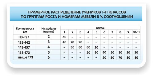 Высота школьной парты и стула по росту ребенка таблица