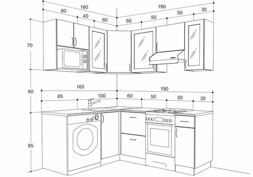 Для удобства использования кухни также важно учесть высоту размещения верхних и нижних шкафов. Стандартные размеры кухонных шкафов обеспечивают оптимальное использование пространства и удобный доступ к хранимым предметам.