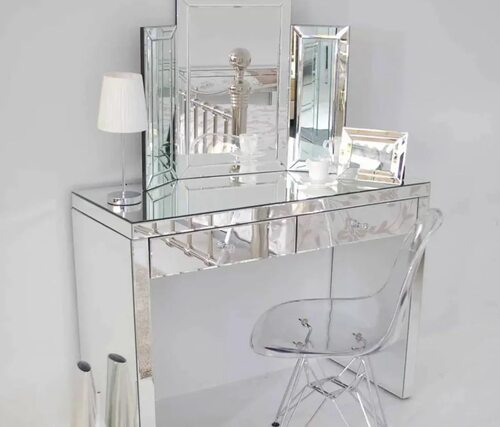 Туалетный столик из стекла с зеркалом представляет собой элегантное и функциональное решение для вашей ванной комнаты или спальни. Этот предмет мебели сочетает в себе изысканный дизайн и практичность, обеспечивая удобство при уходе за собой.