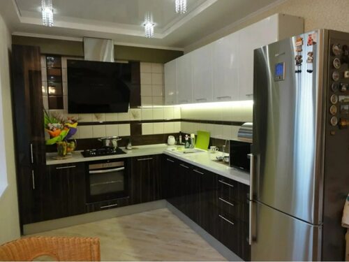 Угловой кухонный гарнитур с телевизором