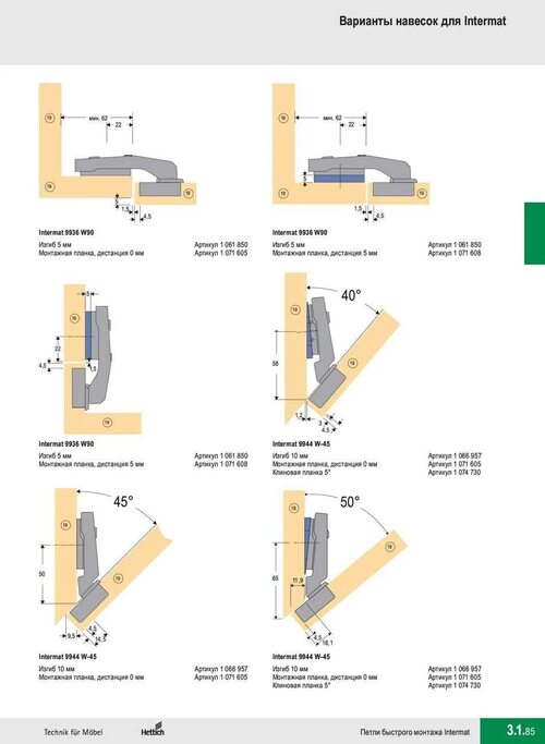 Петля накладная 9936 Intermat Hettich для узкого al профиля
