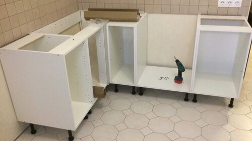 Продолжайте сборку, устанавливая фасады, ручки, петли и другие аксессуары согласно инструкции производителя. При необходимости проводите дополнительные отверстия или корректировки для точной установки элементов.