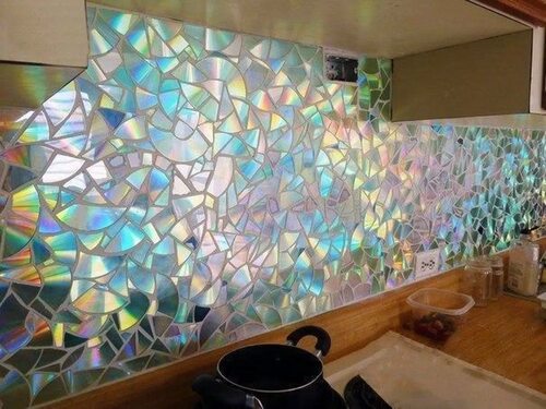Фото 7: Идеи декорирования помещения с использованием дисков в качестве аксессуаров.